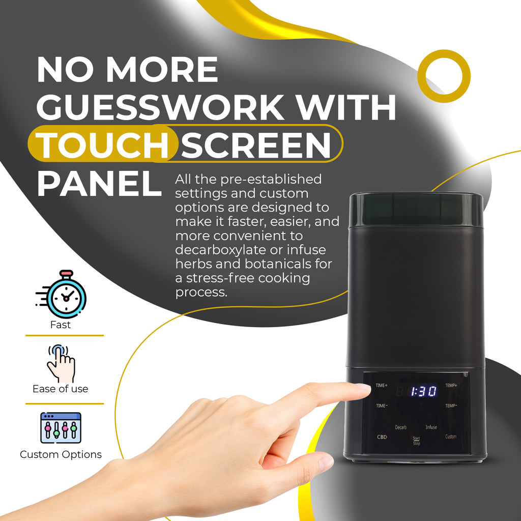 - Pre-set Functions: Butter, Oil, Tincture & Clean – Fully adjustable programs
